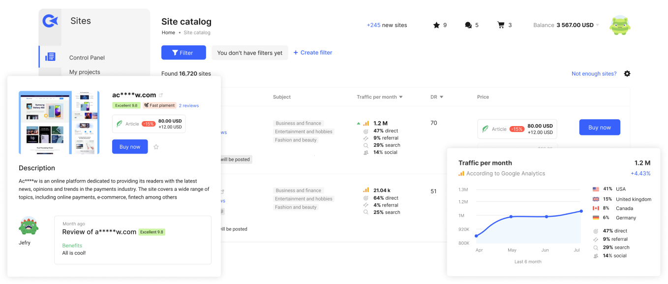 Your result is important to us, not the size of the catalog. Choose relevant donor sites and get high-quality backlinks for effective search engine promotion and attracting both Ukrainian and foreign clients