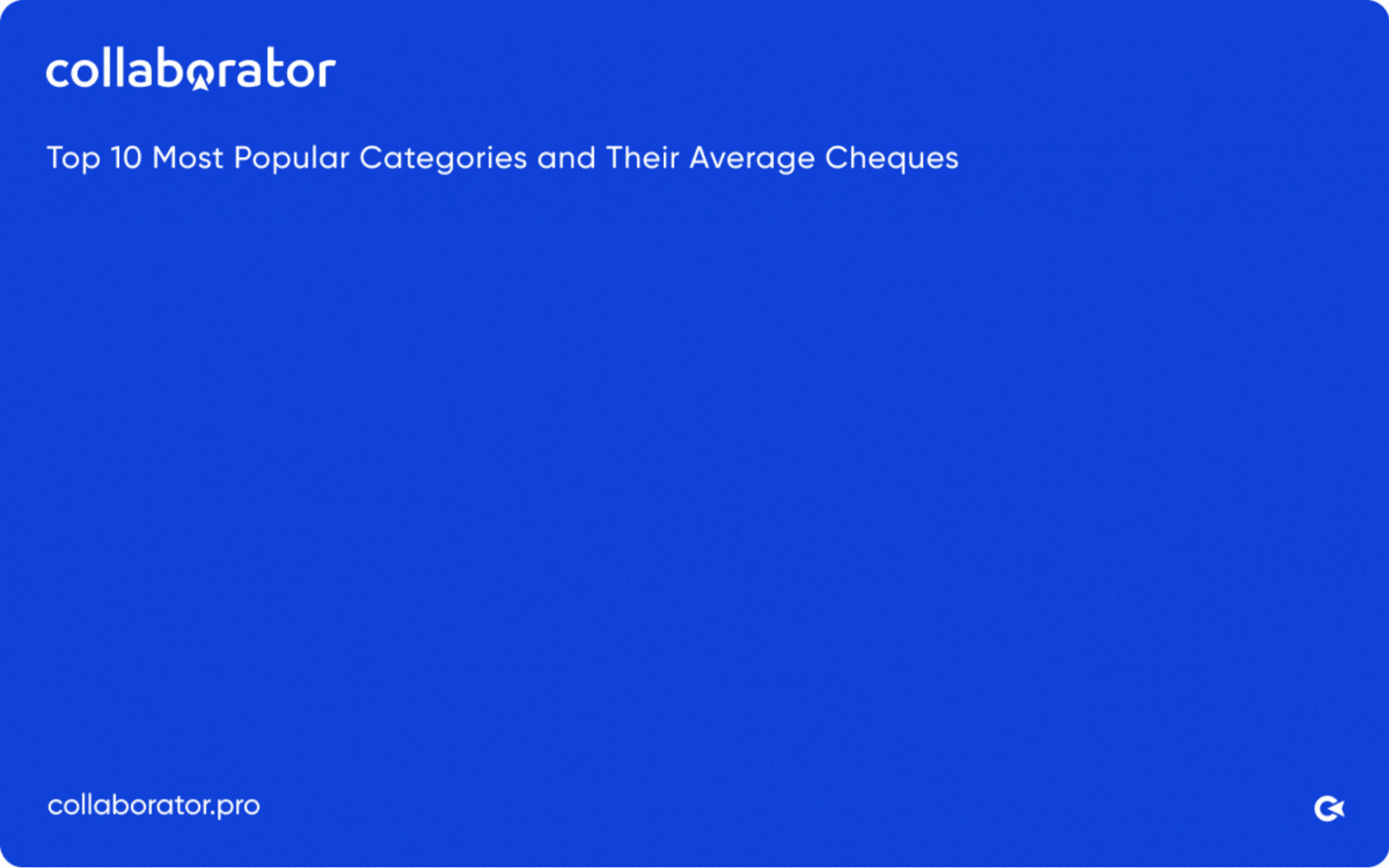 The catalog features over 50 categories, helping advertisers browse platforms by niche and select the ones that best match their goals. Over the past year, these categories led by te number of deals — the chart below also shows their average cheque amounts based on hundreds of thousands of placements: